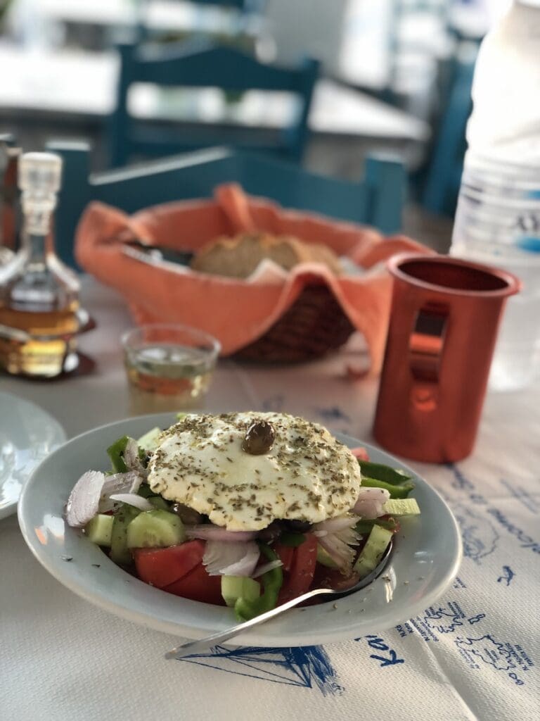 De traditionele witte huisjes en blauwe deuren zijn zeer fotogeniek. Net als de kerk met het blauwe kapelletje en het prachtige uitzicht over de baai. In Tholaria dineren we bij Tavern to Panorama, waar we bediend worden door een dame met de meest lieve uitstraling ooit. Hier kun je terecht voor een heerlijk traditioneel Grieks gerecht.